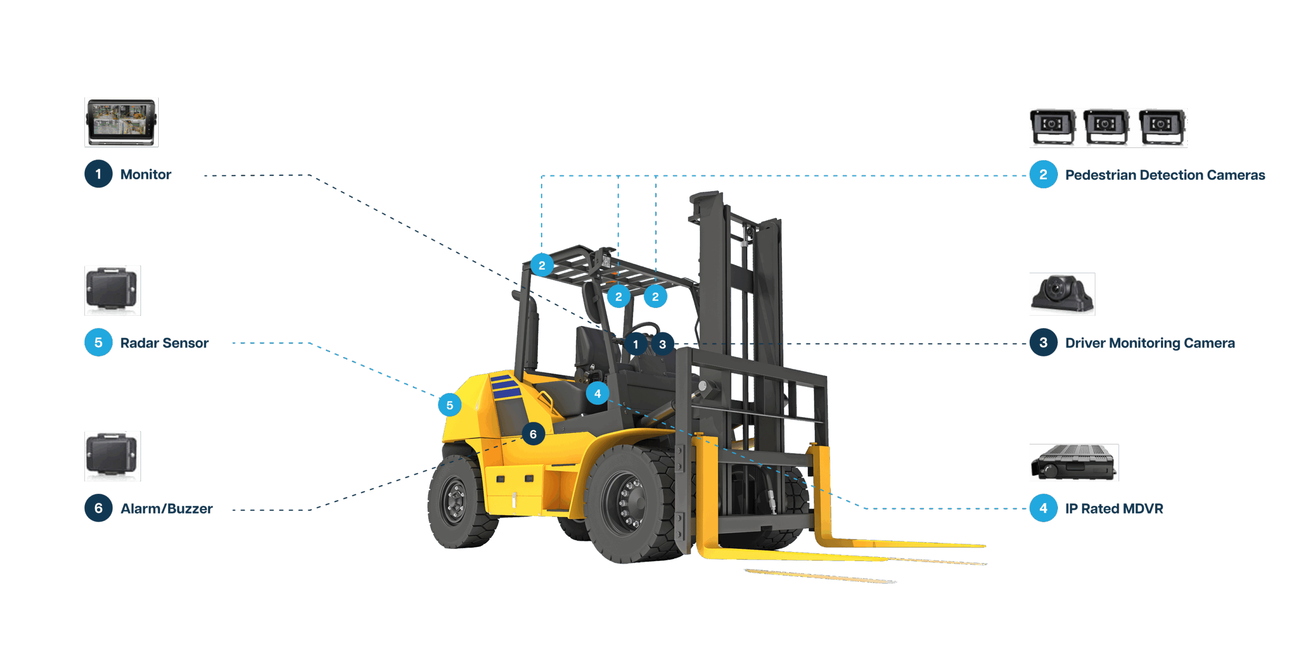 The Fleetware PDS is designed as a high-performance driver assistance aid that provides real-time visual and audible alerts to the operator. It does not currently integrate with the machine’s braking or throttle systems to automatically slow or stop the vehicle. This ensures the operator remains in full control of the machine while being empowered with superior situational awareness to prevent incidents.