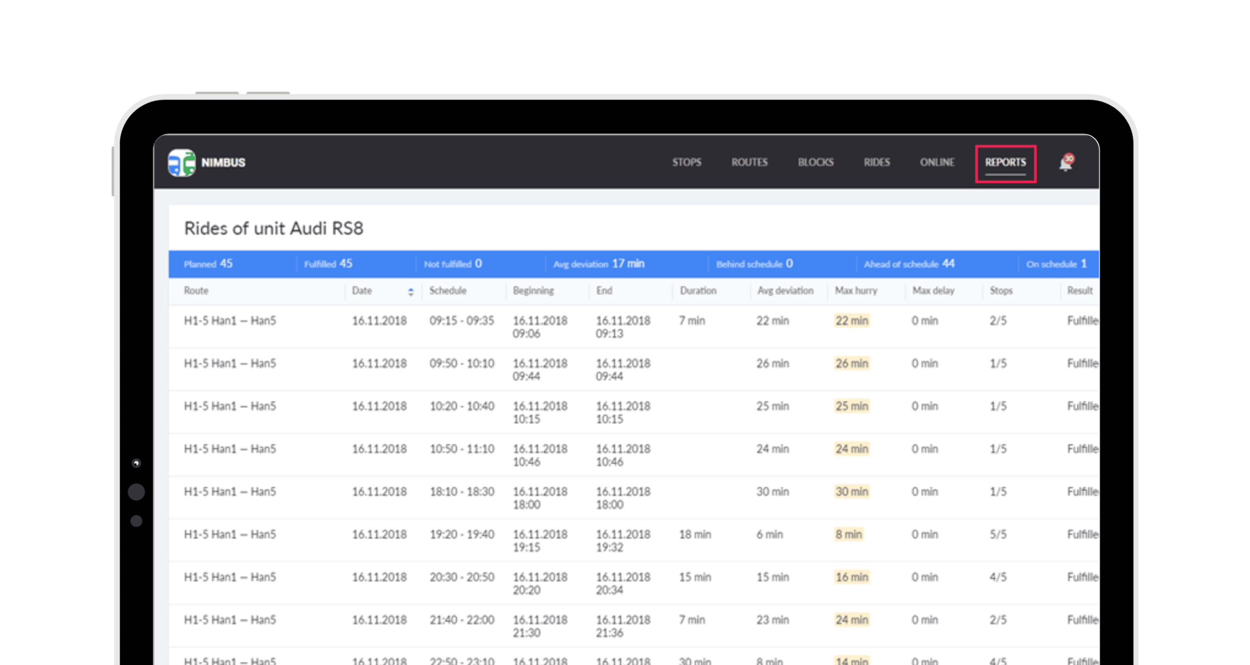 Believe it or not, yes! In conjunction with GPS tracking and telematics, our add-on Nimbus module gives you all the core functionality required for public transport management. Create routes and schedules, plan future “rides”, track vehicles in real-time and generate detailed reports.